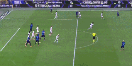 第8分钟,恰尔汗奥卢开出任意球,劳塔罗头球顶高